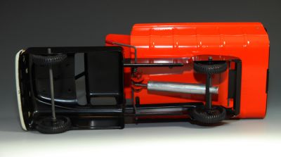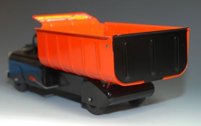 The only thing that keeps this Marx Hydraulic Dump Truck from being mint is the decal on the dump bed....the decal has a few spots of surface wear and discoloration. Otherwise, this truck is just about perfect. Hardly a scratch or a blemish anywhere....you'll have to look hard to find anything wrong.