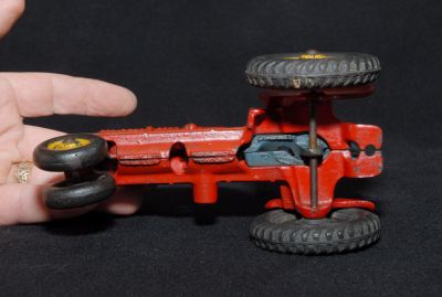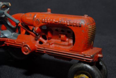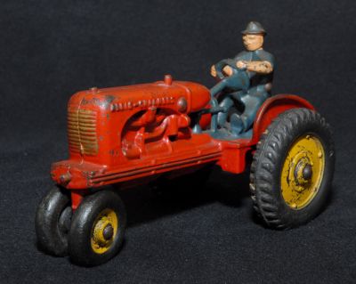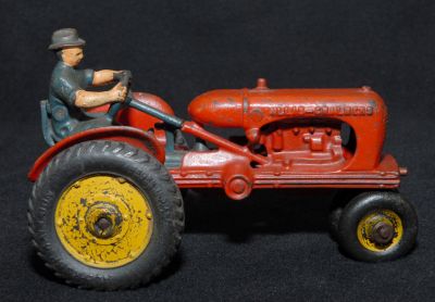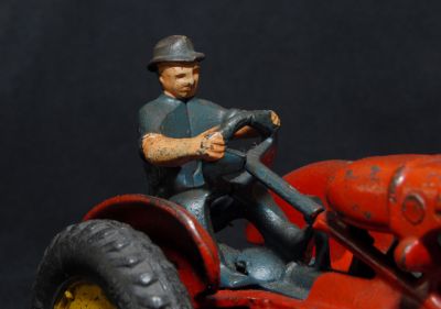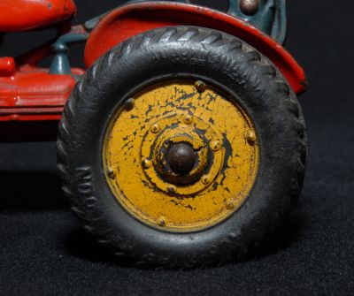 You don't often see this Hubley tractor in this kind of condition. Some minor paint lost, and the centers of the tires show some paint cracking, but otherwise very solid. Even has good paint on the driver! Measures 7 inches. Recently sold at online auction for over $400. Priced less here.