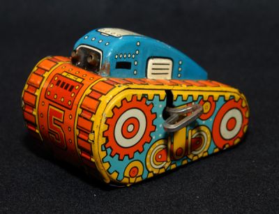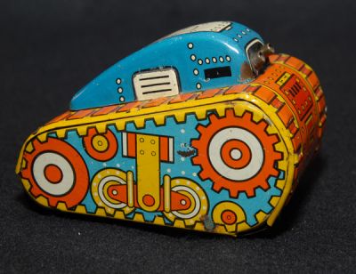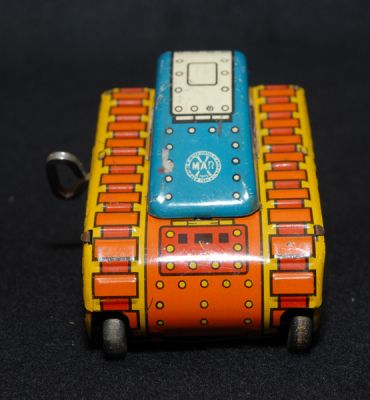 This little Marx Rollover Tank is exceptionally nice! Has some light play wear and rub marks, a few scratches and little spot of corrosion on the lower right corner. Not mint, but darn close. I'm calling it a strong C8. Works well, too! From the 1950s.