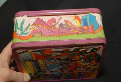 This box isn't in great shape, but it's pretty rare. Has considerable wear, scratches, corrosion and light rust in spots. Inside well worn. No thermos. Despite its condition, this is a desirable box...especially if you need it for your collection!