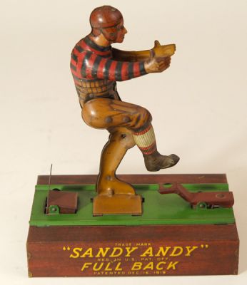 Excellent example of this classic Wolverine toy. No missing parts, only minor scratches and surface wear. Usually you see these guys missing an arm or a leg. Not this one...he has all his body parts, the spring mechanism is strong and works well, no rust, no dents. No box either, unfortunately. And somebody needs to find him a football!