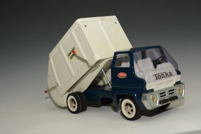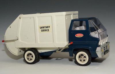 It's not as rare as the square Tonka garbage truck that preceded this model (and sells for about $500) but the condition of this one is superb.