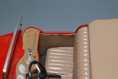 There are only two things that keep this car from being perfect, and they are minor issues. The simulated leather door panel/upholstery on the driver side needs to be reinstalled, and could use some color touchup. It is included and is shown in the picture beside the original instruction sheet. That's right...this car comes with its original instruction sheet, too!