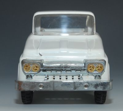 OTHERWISE....truck is in great shape. Decals are original and complete, windshield is clear with only very light scratching, tires and wheels are excellent. Truck has no rust or dents, and minimal paint issues due to age. The front grill and bumper have lost some of their shine, there is a small nick on the hood, and a few other spots and nicks. This toy was used and played with, but other than the one accident, the issues are minor. I would call it a C7....would be a C8 other than the paint loss on the door.