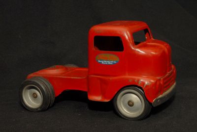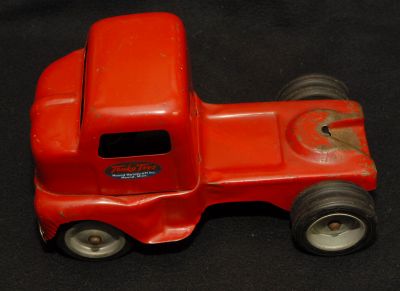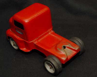 Excellent condition, great decals and paint. Some play wear and scratches, but no rust. Tires and wheels are also very good. This cab was made for Tonkas from 1949 to 1952. The grill design changed in 1953. If you've been looking for the correct Tonka cab for your old Tonka semi trailer, THIS IS IT!
