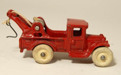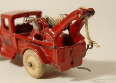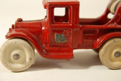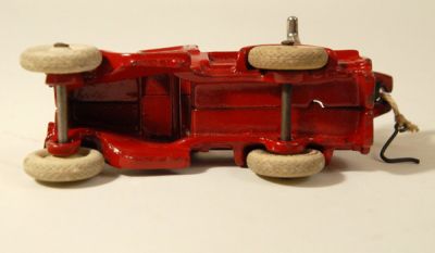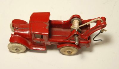 It's not mint, but darn near! 5 1/2", bright paint, partial decal and only a bit of missing paint on the roof. Even the "tow rope" string looks to be old and original. Satisfaction guaranteed. Price is firm, since I don't really care if I sell it.