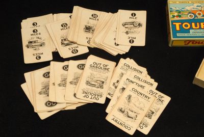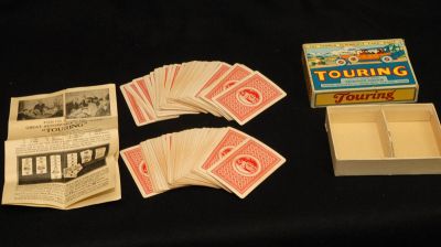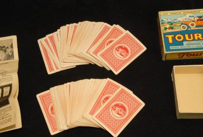 Complete card game, with instructions and box. This is a well used set of cards, but no damage or tears. Box is near perfect, with bright graphics. Has one corner with a tear. Overall, BEAUTIFUL Condition!